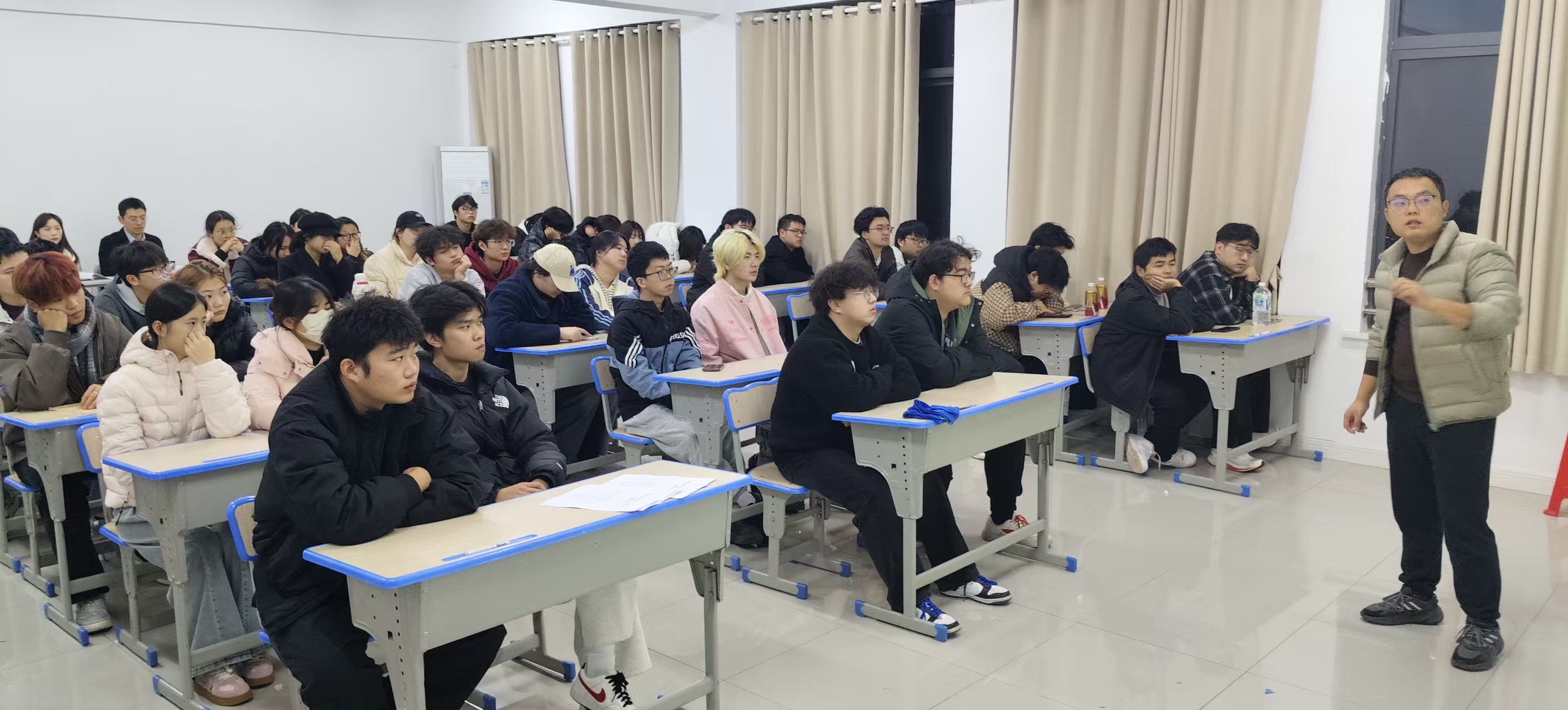 各班班会现场气氛活跃,师生互动热烈。围绕“如何夯实专业基础”“未来职业格局将如何演变”等学生关切的问题,辅导员们结合行业最新动态,为同学们提供了前瞻性的学习建议和职业发展指导。
