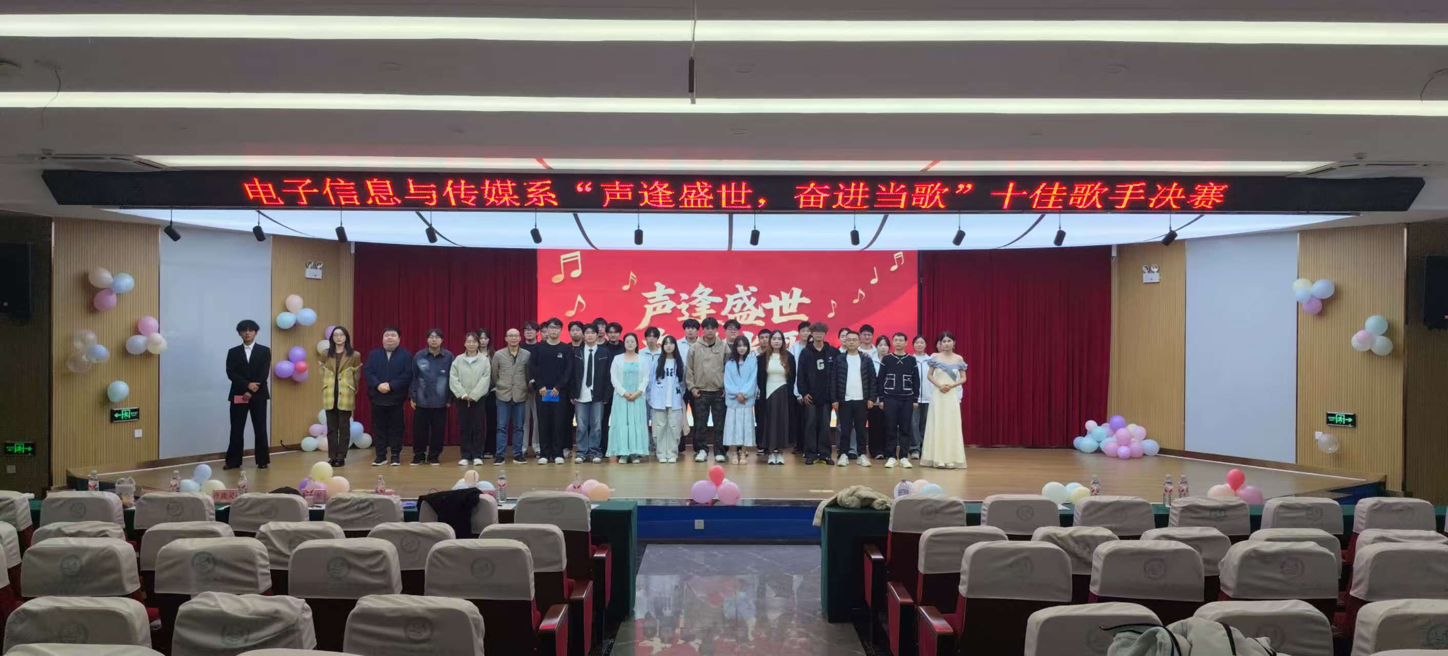 以青春之歌,唱响时代之音。依托一站式社区建设,电子信息与传媒系于10月24日在大学生活动中心隆重举行了“声逢盛世,奋进当歌”十佳歌手大赛。担任本次比赛评委分别是;黄宝智、袁腾伦、许鹿灵、胡祥奔、胡子怡五位老师。电子信息与传媒系副主任高文俊应邀出席,专职辅导员付香吟、包建安及各系部团学委员会负责人、社团各负责人作为嘉宾莅临现场,与300名学生代表共同观看了这场音乐盛宴。