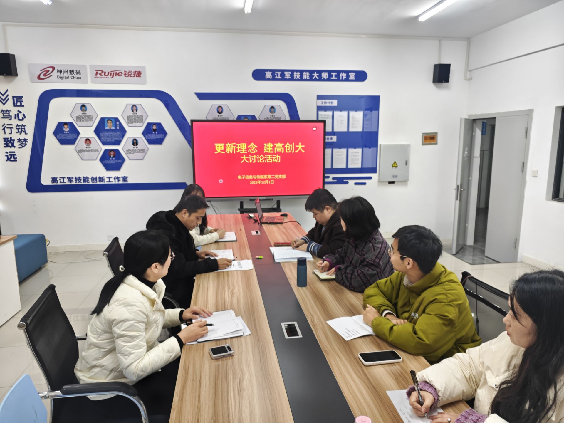 为深入贯彻落实上级党委和学院党委部署,电子信息与传媒系党总支在11月份集中组织学习了党的二十届四中全会精神、“十五五”规划建议、习近平总书记关于教育的重要论述、《习近平谈治国理政》第五卷、市委书记朱浩东来校讲话精神等内容,进一步筑牢了全系教职工的思想基础。12月1日下午,电子信息与传媒系第一、第二党支部分别在尚信楼307、204召开党员大会,围绕“更新理念、建高创大”主题,专题开展交流、研讨。