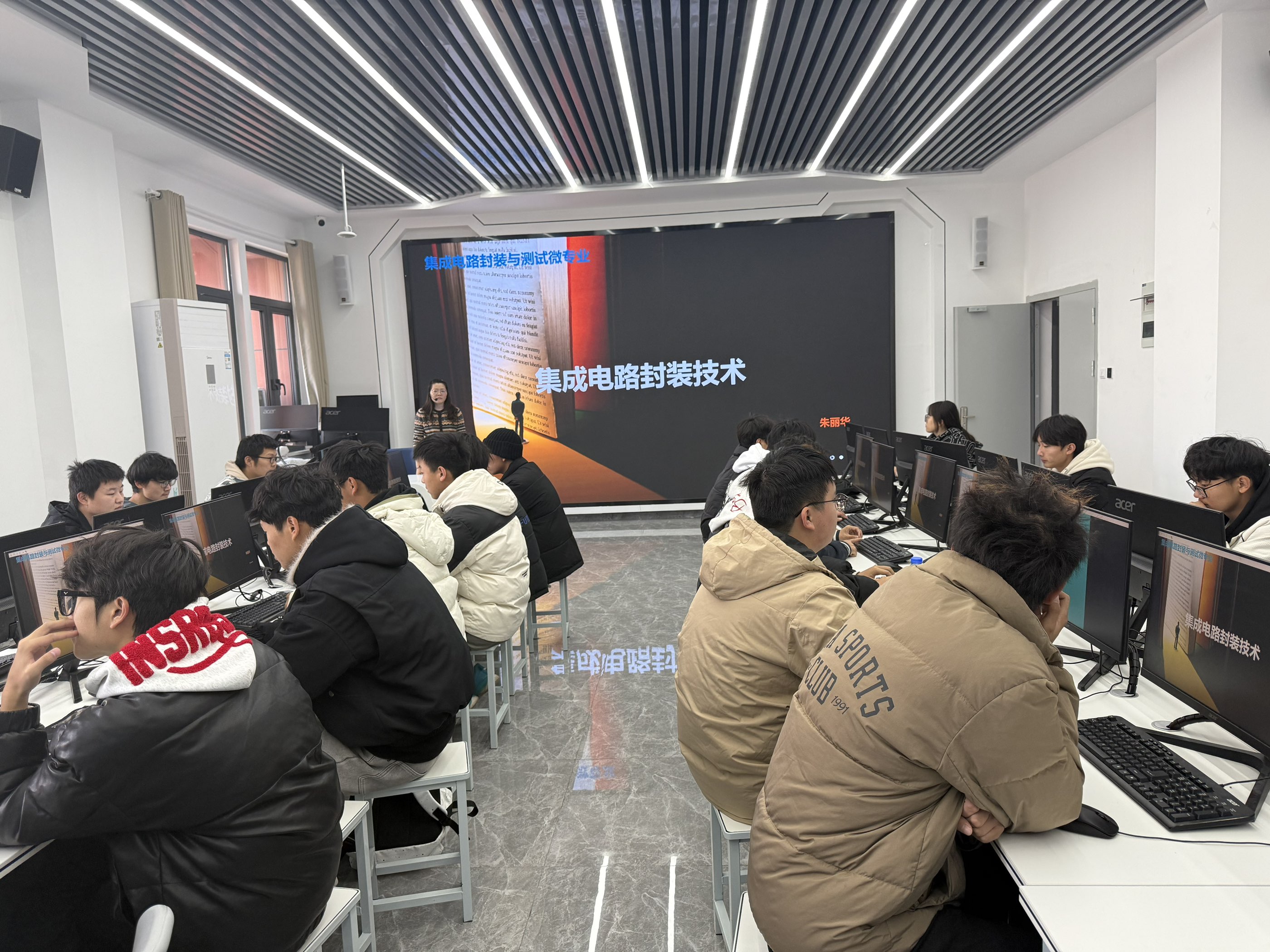 开班仪式上,微专业负责人朱丽华老师系统介绍了该专业的人才培养模式、课程体系与师资配置。她强调,微专业课程设置紧密对接半导体封装与测试领域的实际需求,涵盖封装工艺、测试技术、设备操作与维护等核心内容,并构建了由校内骨干教师与企业高级工程师共同组成的教学团队,实现理论与实战深度融合。仪式结束后,朱丽华老师讲授了首门课程《集成电路封装技术》,从基础概念到工艺应用,为学生奠定了扎实的专业认知基础。
