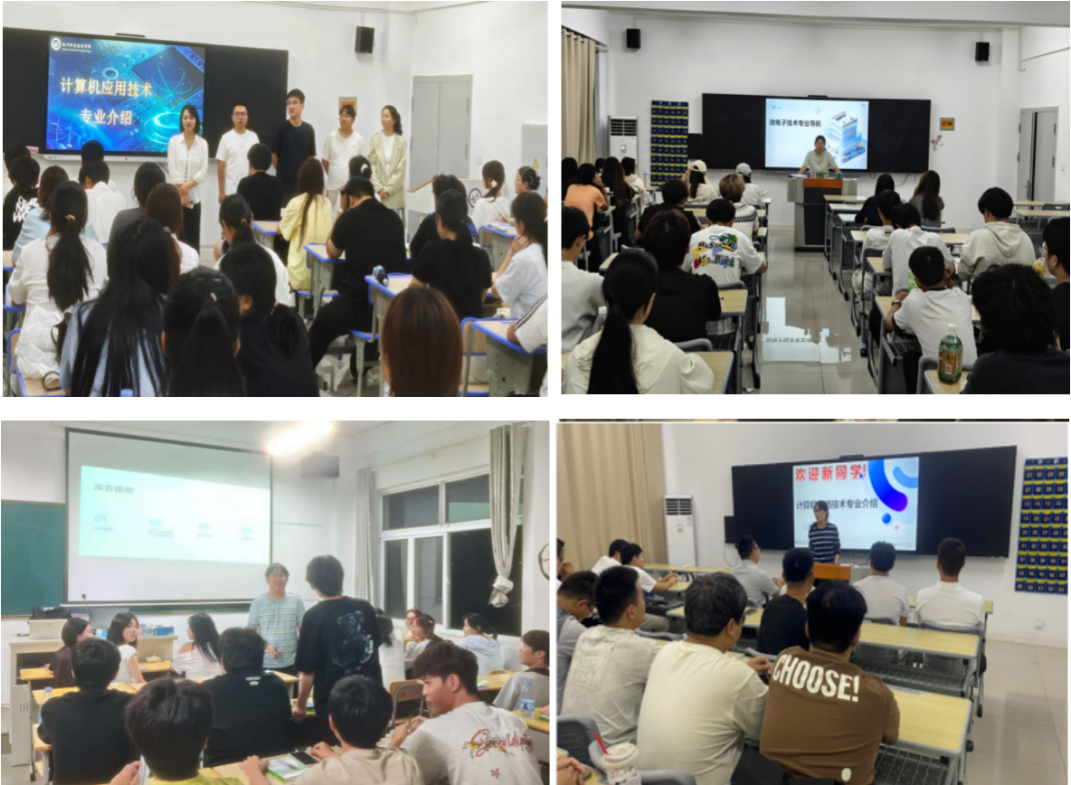 计算机网络技术专业聚焦网络系统管理与安全,涵盖专业前景、人才培养路径并深入浅出讲解核心课程;计算机应用技术专业引导新生转变学习方式,解读软件开发、嵌入式系统与人工智能三大方向,强调实践与创新思维,鼓励参与职业技能及创新创业竞赛,助力规划三年成长蓝图;人工智能技术专业从行业应用与岗位需求出发,系统讲解机器学习、深度学习等核心课程,帮助学生明确目标、树立自主学习意识;电子信息工程技术专业紧扣行业需求,介绍电子电路设计、嵌入式开发等关键技术,突出创新与实践能力培养,助力精准定位学业与职业方向;微电子技术专业以“芯片是信息时代的‘粮食’”为引强调战略地位,介绍集成电路从“毫米级”到“纳米级”的技术跃迁及在人工智能等领域的应用,课程覆盖前后端设计与封测技术,依托校内外实训平台培养高素质“造粮人”,服务区域产业发展。